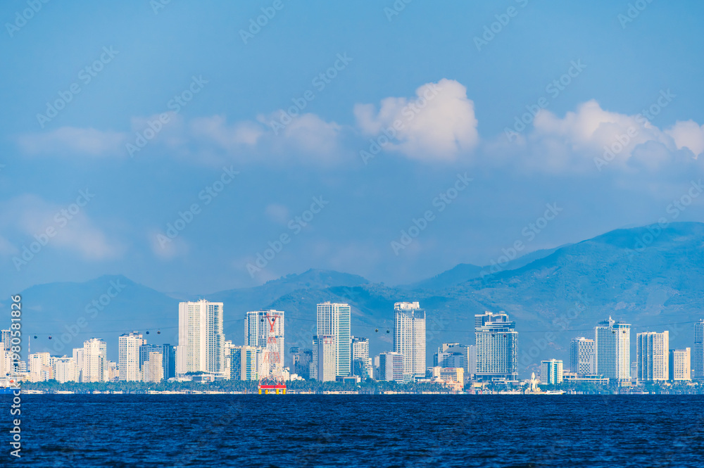 Panorama of Nha Trang city in Vietnam. Resort town with skyscrapers of hotels by the sea in Asia on summer day #1980581826