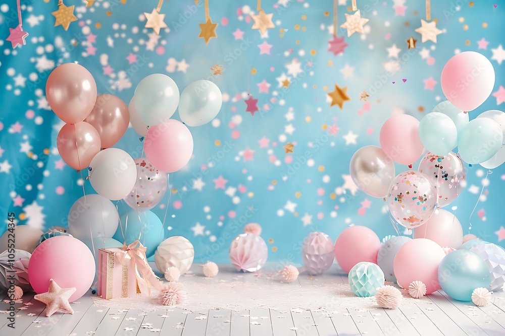 Pastel Balloon and Star Birthday Backdrop #1055224345