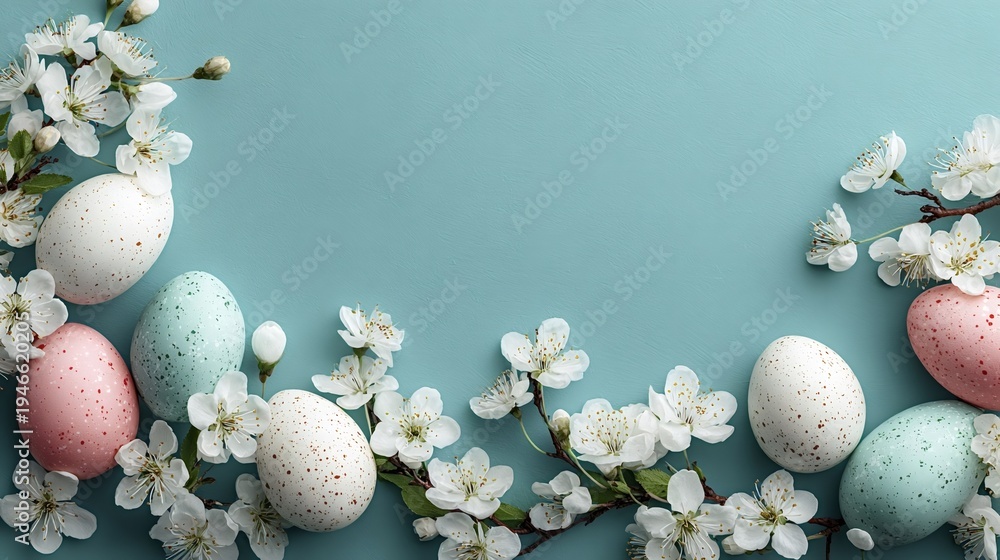 Pastel easter eggs and blooming spring cherry blossoms #1946620205