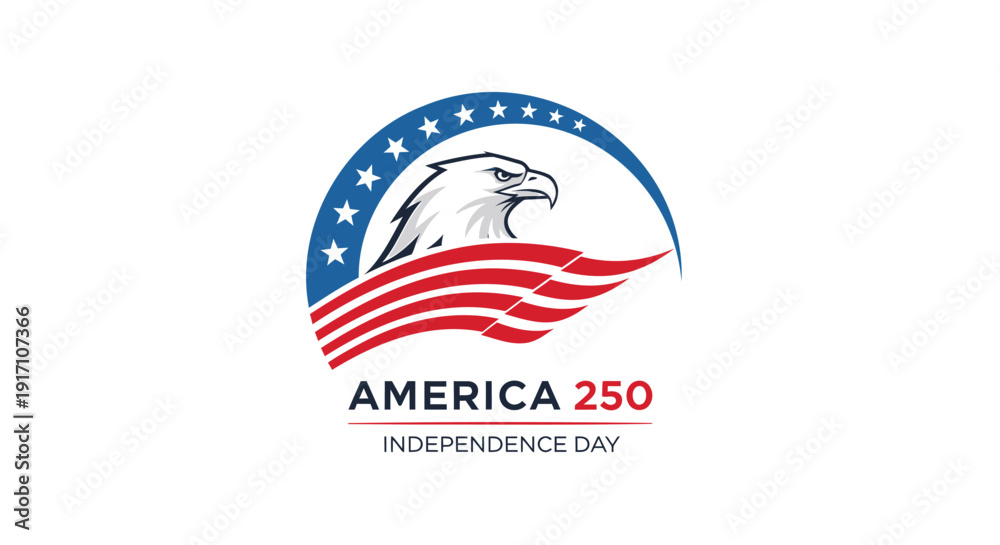 Patriotic America 250 Independence Day icon, vector illustration of eagle with American flag and stars. #1917107366