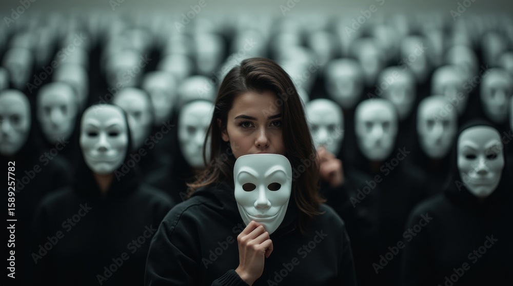 People conceal true emotions with happy masks in artwork about impostor syndrome. Concept Impostor Syndrome, Concealed Emotions, Artwork, Masks in Art, Emotional Deception #1589257782