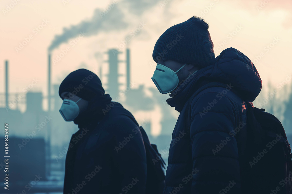 People in protective mask. Air pollution city smog from factory concept. Background concept #1491845977