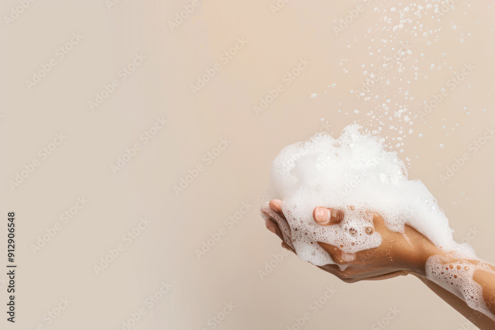 Person washing hands with soap, representing personal hygiene #912906548
