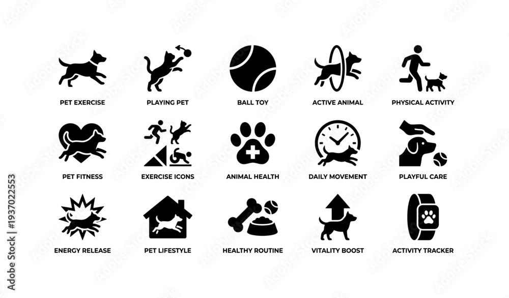 Pet exercise icons featuring dogs and cats in various activities #1937022553