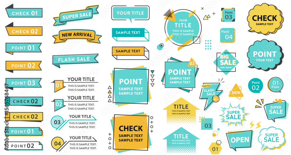ポップなフレームデザインのセット ( 背景 見出し タイトル チラシ セール メモ メンフィス リボン 吹き出し ふきだし ) #1565768467