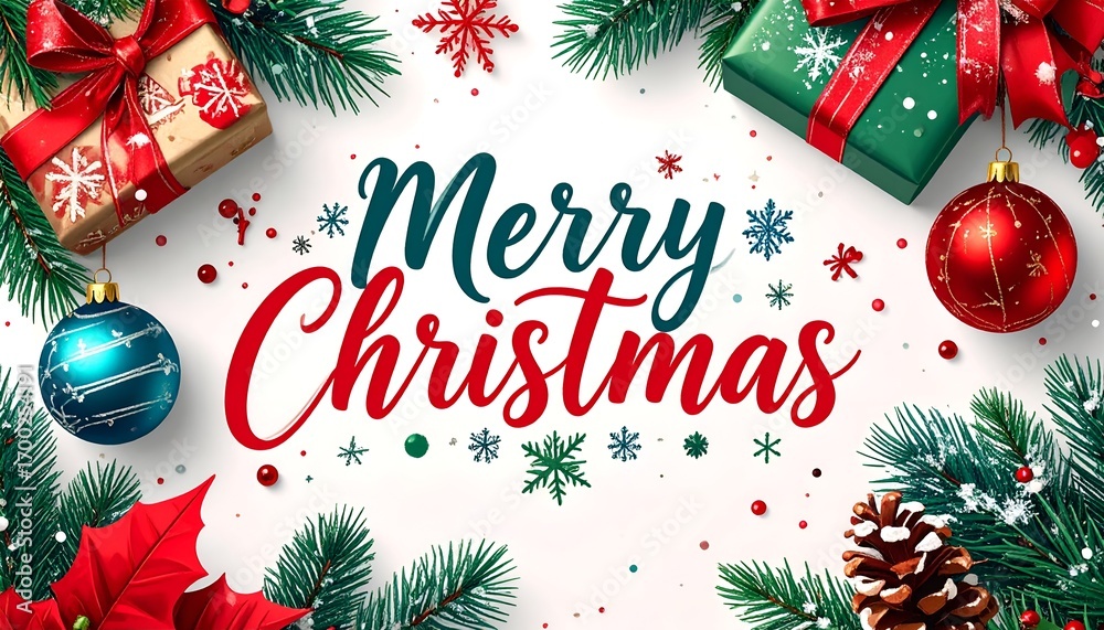メリークリスマスの手書き風ロゴと飾り #1700254191