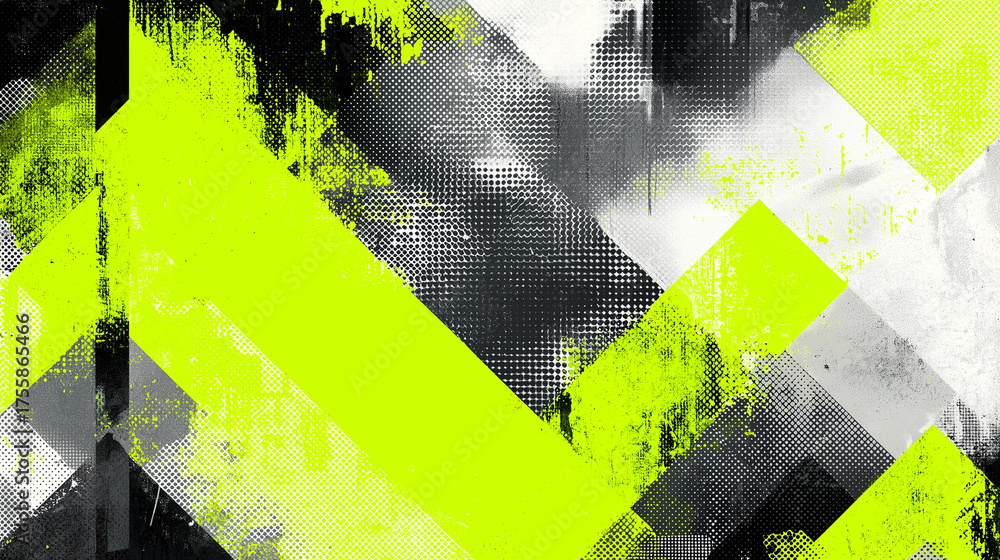 蛍光の緑色と黒のグリッチ・グランジの抽象的背景(テクノロジー・ストリート・ノイズ) #1755865466