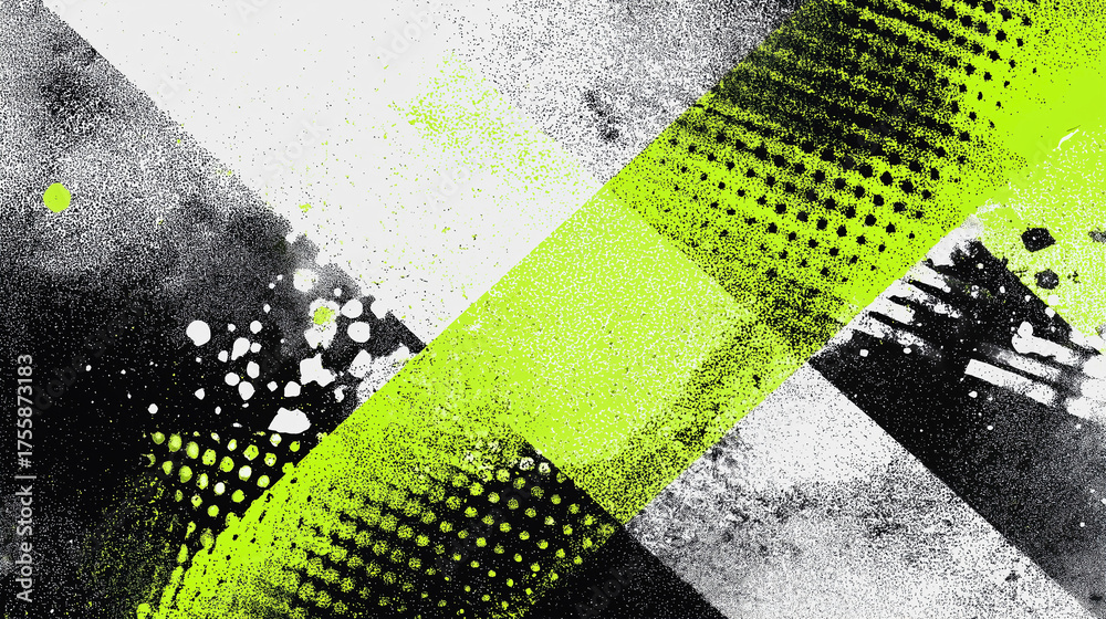 蛍光の緑色と黒のグリッチ・グランジの抽象的背景(テクノロジー・ストリート・ノイズ) #1755873183