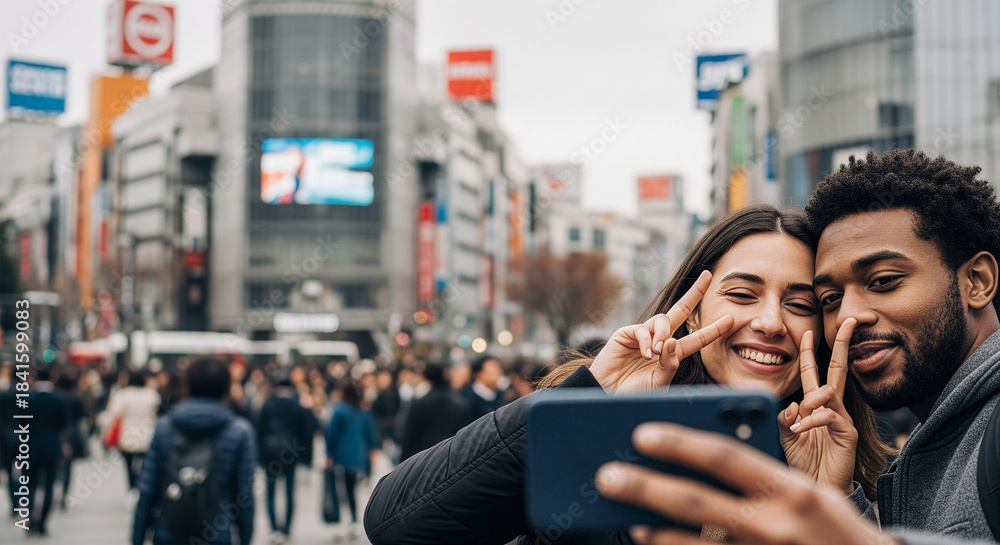 渋谷スクランブル交差点で自撮りする外国人カップルとコピースペース 東京観光のインバウンド #1841599083