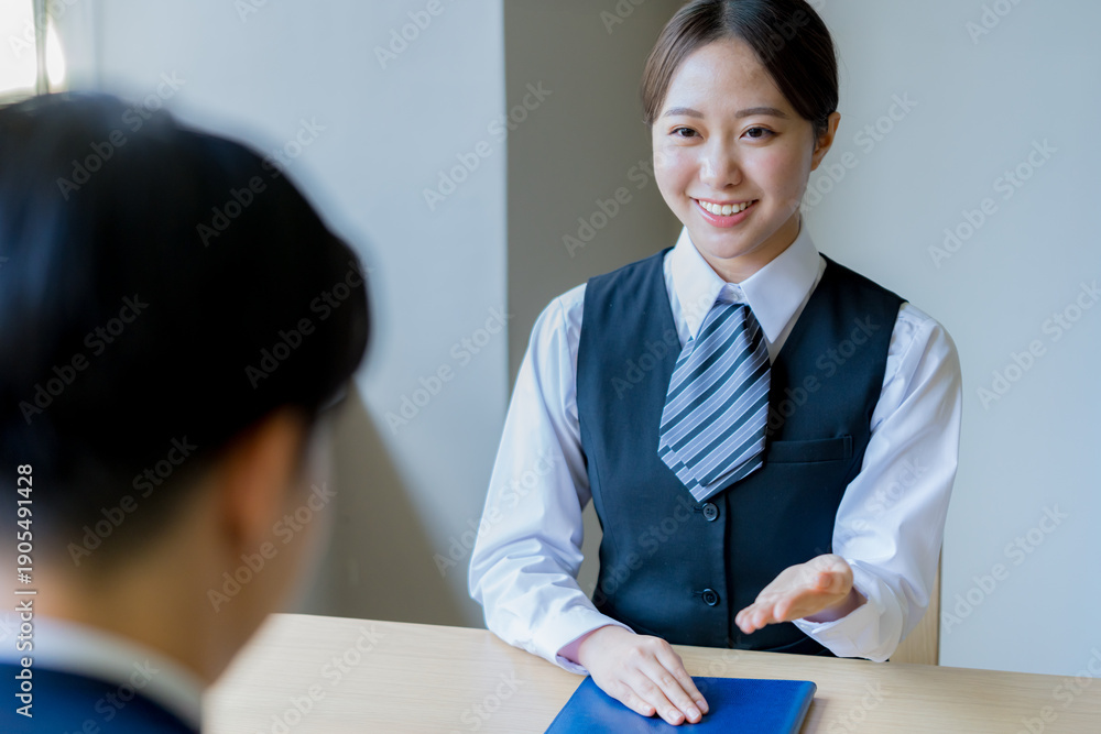 受付で説明するビジネスウーマン #1905491428