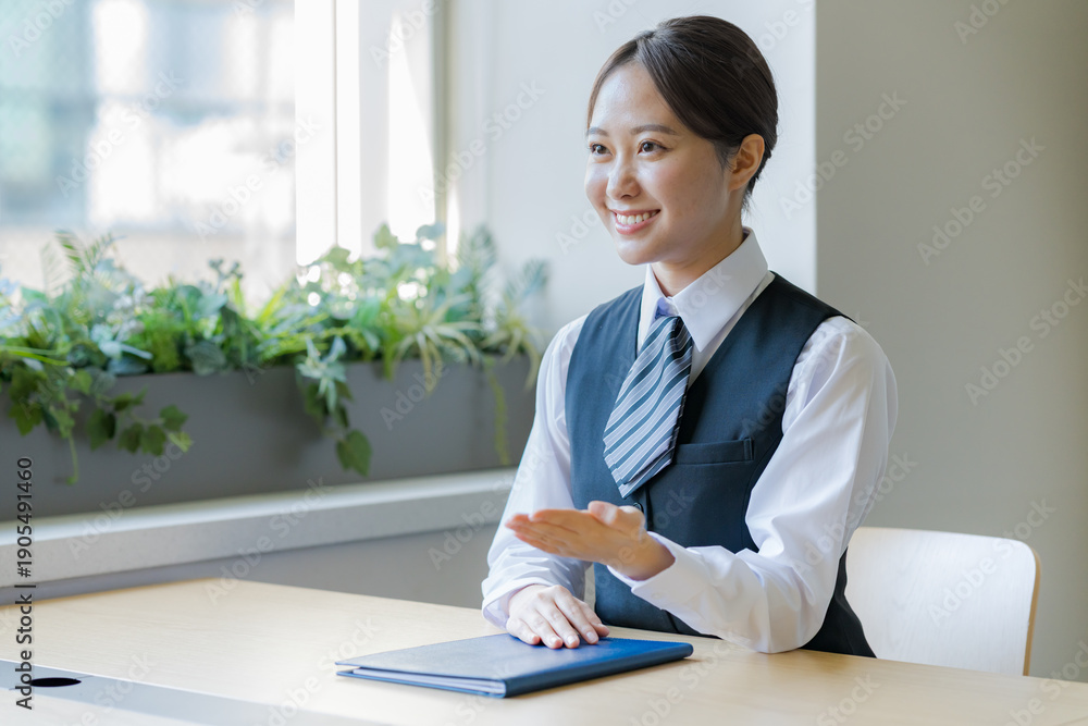 受付で説明するビジネスウーマン #1905491460