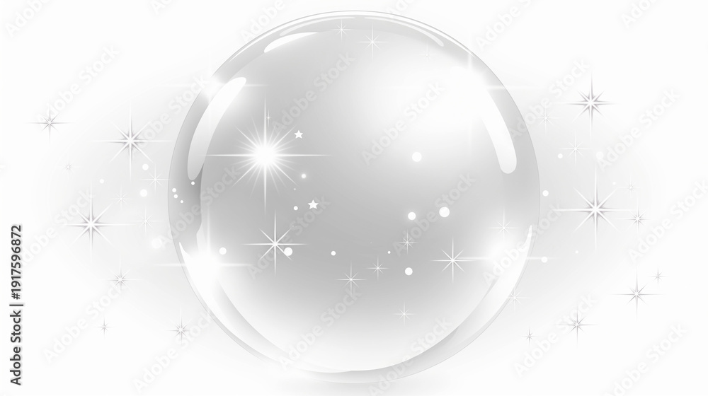 白背景に浮かぶ透明なクリスタルボールと輝く光の粒子の幻想的な背景素材 #1917596872