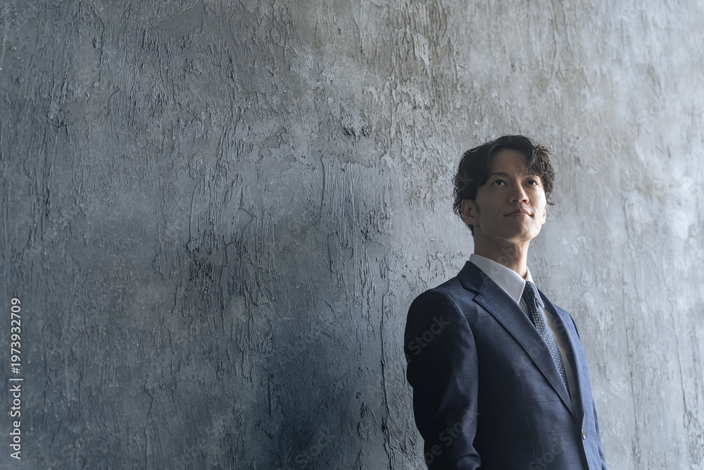 見上げる、成長、挑戦、チャレンジ、ビジネス、ビジネスパーソン、ビジネスマン、目標、キャリア、転職、人材、営業、努力、希望、仕事、働く、男性、日本人、戦略、経営者、社長、青年、若い、20代、30代、独立、起業、経営、就活、就職活動、就活生、リクルート、ポートレート、かっこいい、クール、イケメン、コピースペース、広告、自信、サクセス、成功、経験、サラリーマン、会社員、管理職、昇進、出世、スーツ、人物 #1973932709