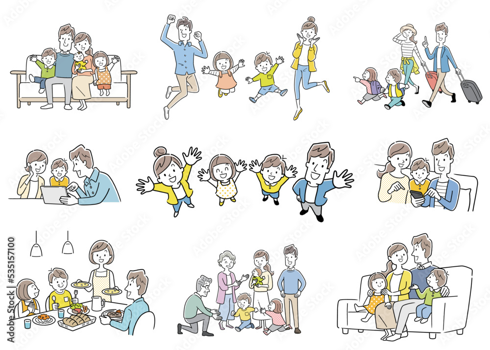 ベクターイラスト素材:笑顔の家族、家族セット #535157100