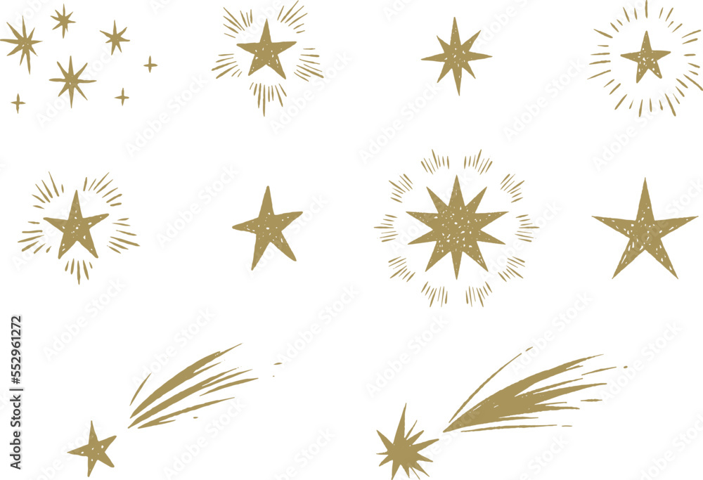 シンプルな手描きの星 流れ星 輝き きらきら装飾イラストセット #552961272