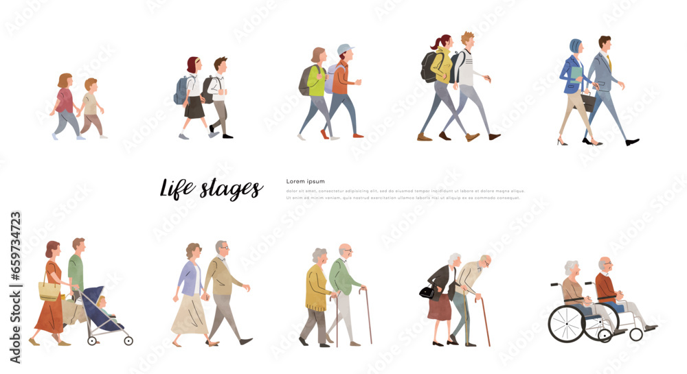 ベクターイラスト素材:男性と女性のライフステージ、夫婦、カップル、男女 #659734723