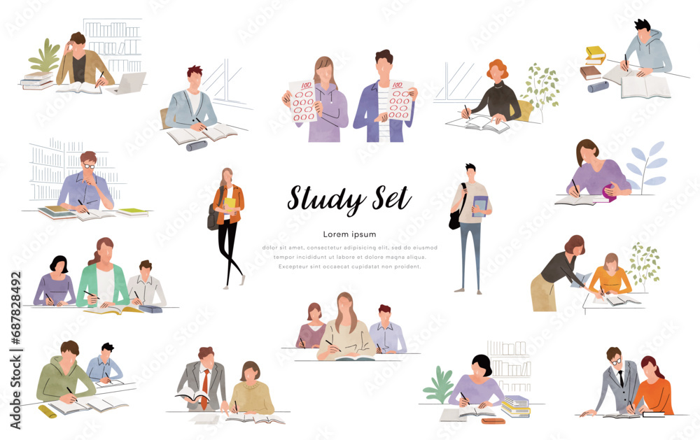 ベクターイラスト素材:勉強する学生、人物セット #687828492