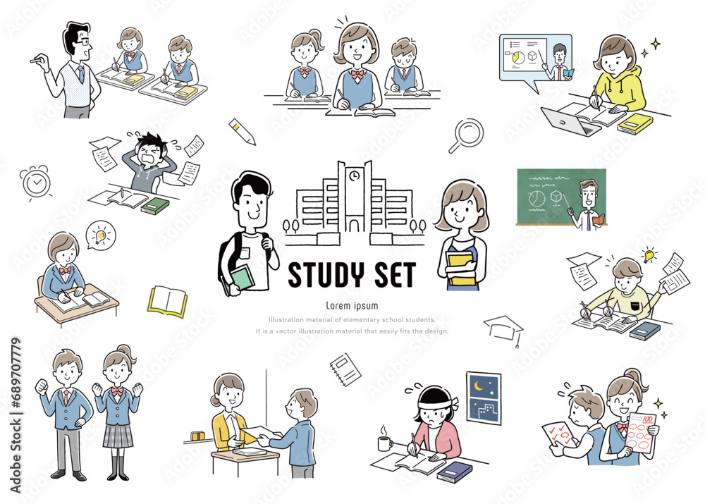 ベクターイラスト素材:勉強する学生の人物セット #689707779