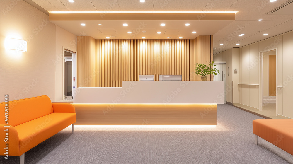 オレンジの光が明るい広々とした待合室 #961206335