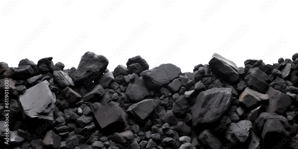 Pile of black coals isolated on transparent background - Generative AI #611901800