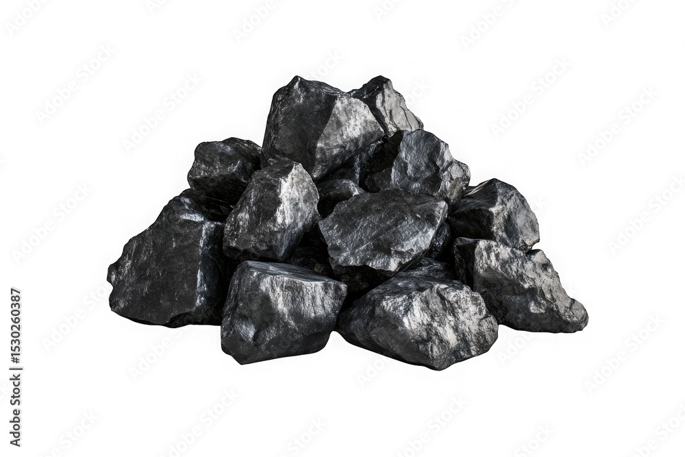 Pile of shiny coal rocks, energy resource, fossil fuel, carbon nuggets, mining material, raw ore, mineral specimen, geology isolated on transparent background #1530260387