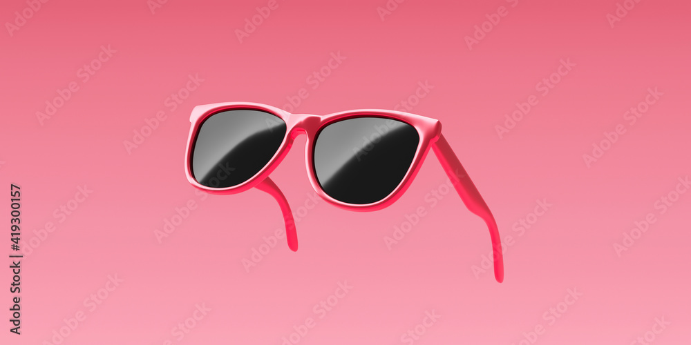 Pink fashion sunglasses and black lens optic on summer object background with modern accessory design. 3D rendering. #419300157
