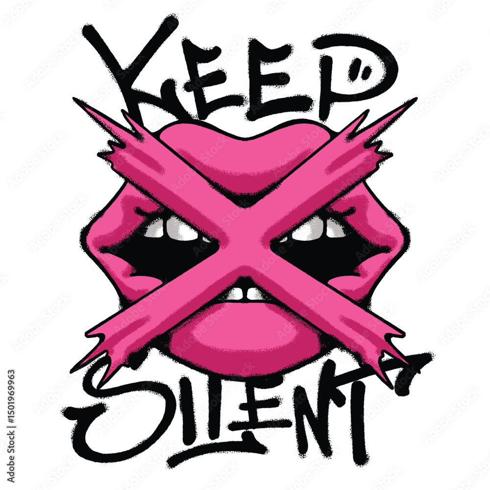 Pink Lips and Keep Silent Urban Streetwear t shirt design #1501969963