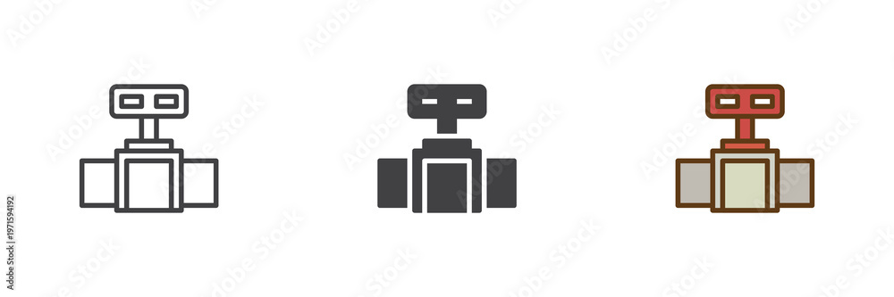 Pipe valve icon set in line, outline and solid styles. Valve icon with editable stroke vector sign, plumbing control symbol, water system element icon. #1971594192