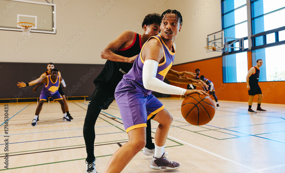 Players competing on indoor basketball court #1714530433