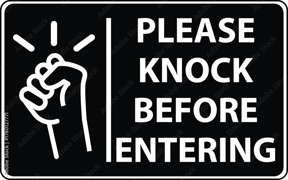 Please knock before entering. Please knock loudly door sign. Please knock symbol. Please knock sign used in homes, offices, and industrial companies. flat style. #1780127771