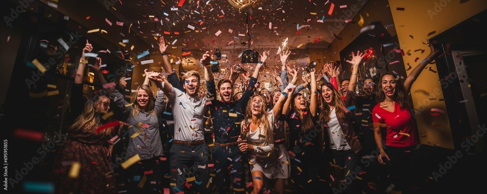plein de gens font la fête dans un appartement pour le nouvel an #695951855