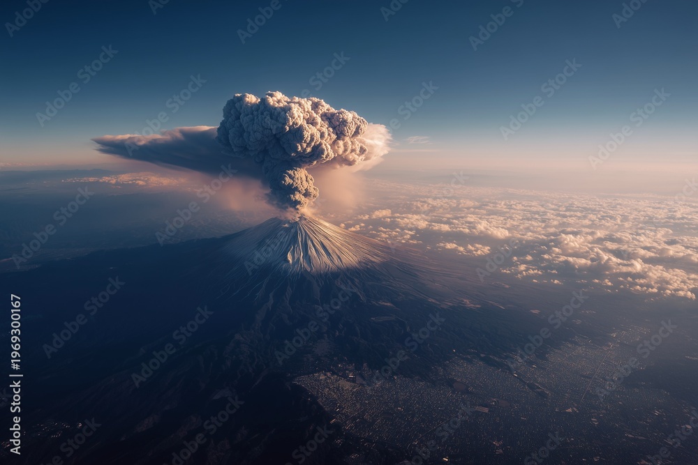 Plume of smoke coming out of a volcano mountain erupting #1969300167