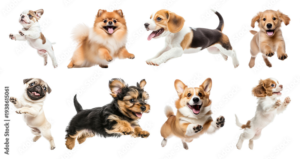 PNG Joyful puppies in playful poses, transparent background #1938615061