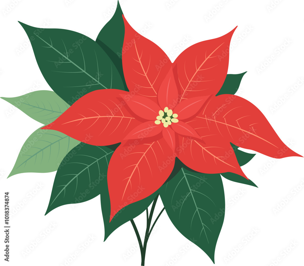 Poinsettia flowers realistic for Christmas or New Year greeting card design. Vector isolated icon poinsettia for Christmas winter holiday decoration. #1018374874