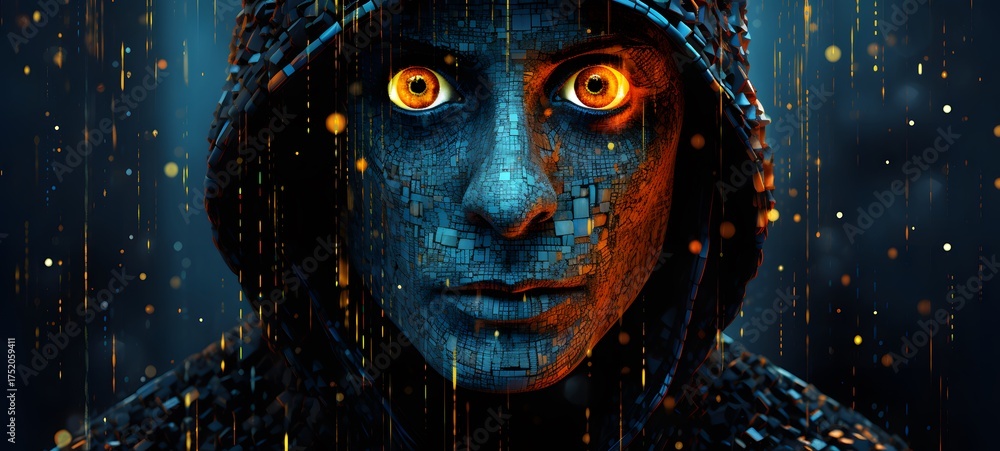 Pointillist grunge design of necromancer with abstract dotted pattern,generative AI #1752059411
