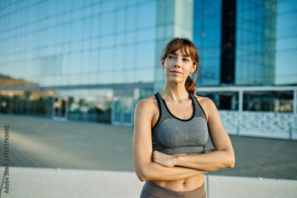 Portrait opf a young woman prepering to exercise in sportwear posing for a portrait lookin at camera #1973793002