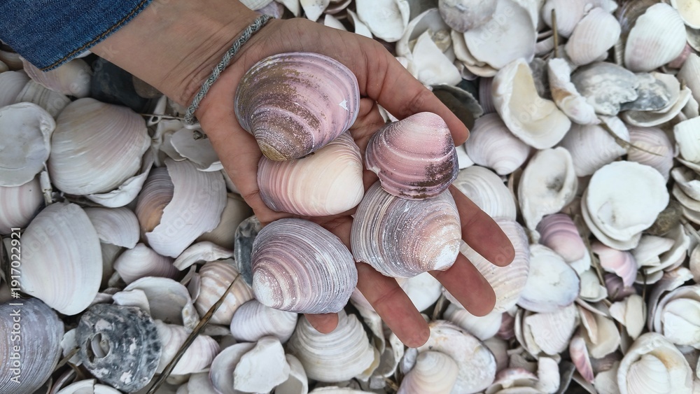 Praia cheia de conchinhas em San Antonio Este. Argentina #1917022921