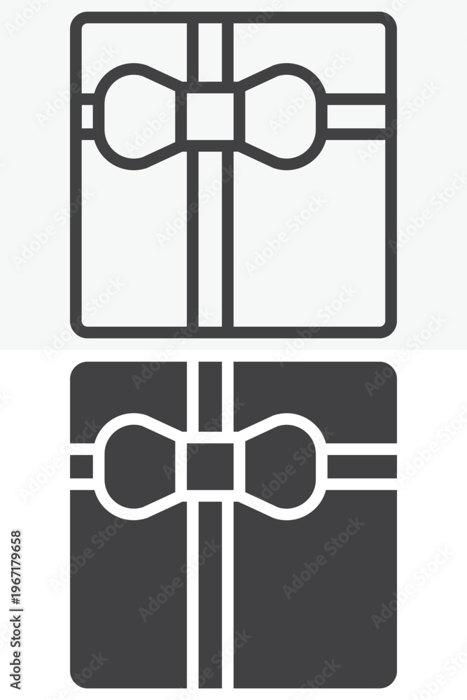 Present box with ribbon bow icon in line and solid styles. Outline and solid icon, editable stroke vector sign symbol. Present box icon for celebration and gifts. #1967179658