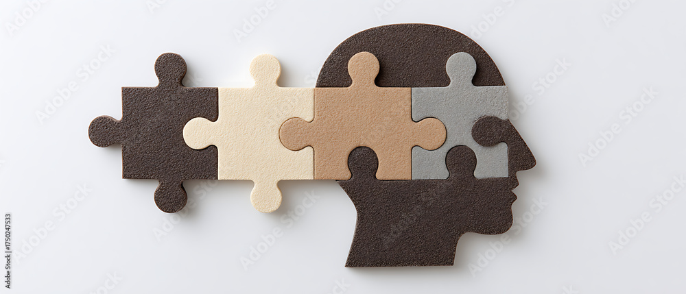 Puzzle Pieces Forming a Human Head Silhouette Representing Creative Thinking and Problem Solving #1750247533