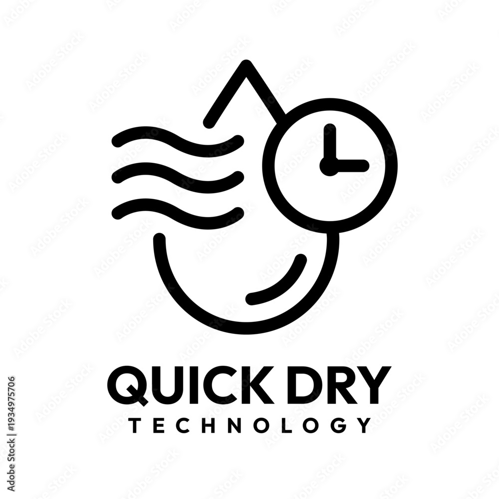 Quick dry icon set. Quick and fast clock dry wet clothes symbol. Quick dry label, logo, line, badge, sticker, circle, black vector, isolated illustration. Quick drying label product packaging design. #1934975706