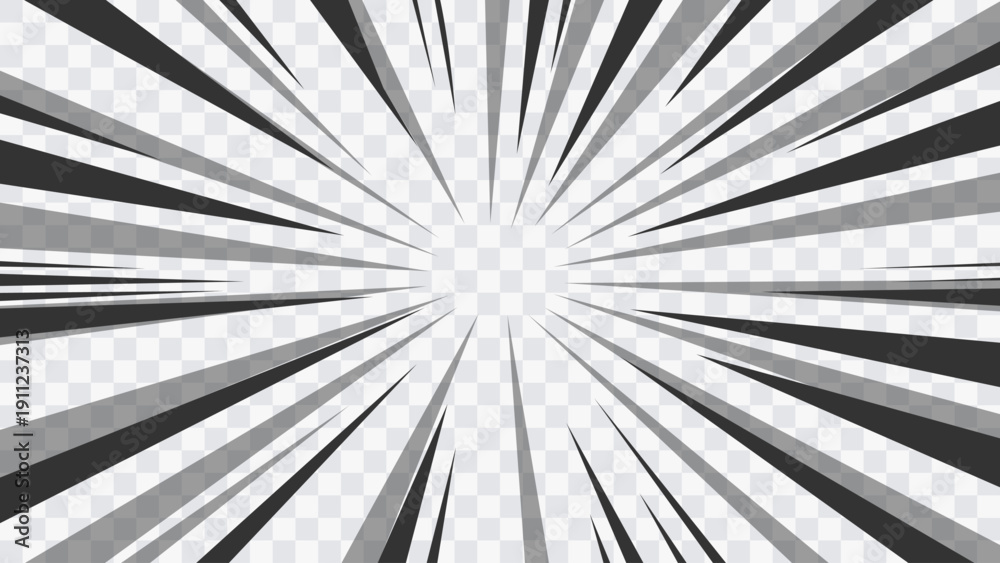 Radial motion lines forming a dramatic action burst. Comic and manga inspired background for fight scenes, posters and animation projects. #1911237313