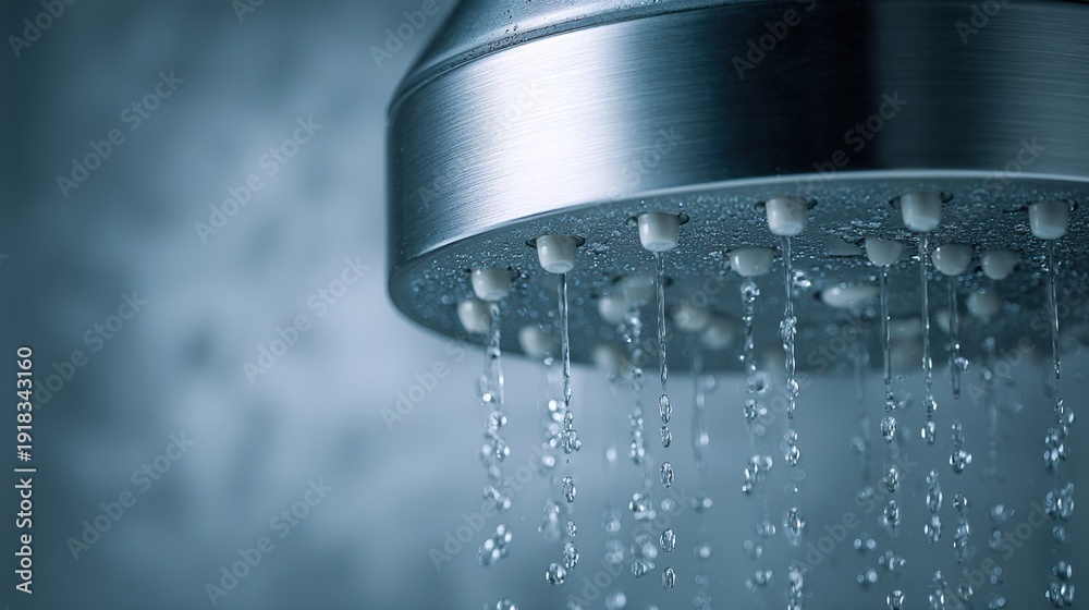 Rain Shower Head in Brushed Nickel With Water Droplets in Light Blue Gradient Background #1918343160