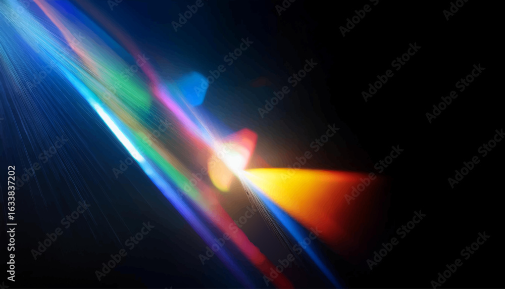 Rainbow crystal light leak flare reflection vector illustration. Lens colorful set. Iridescent crystal leak glare reflection effect. Optical rainbow lights, glare, leak, streak overlay. #1633837202