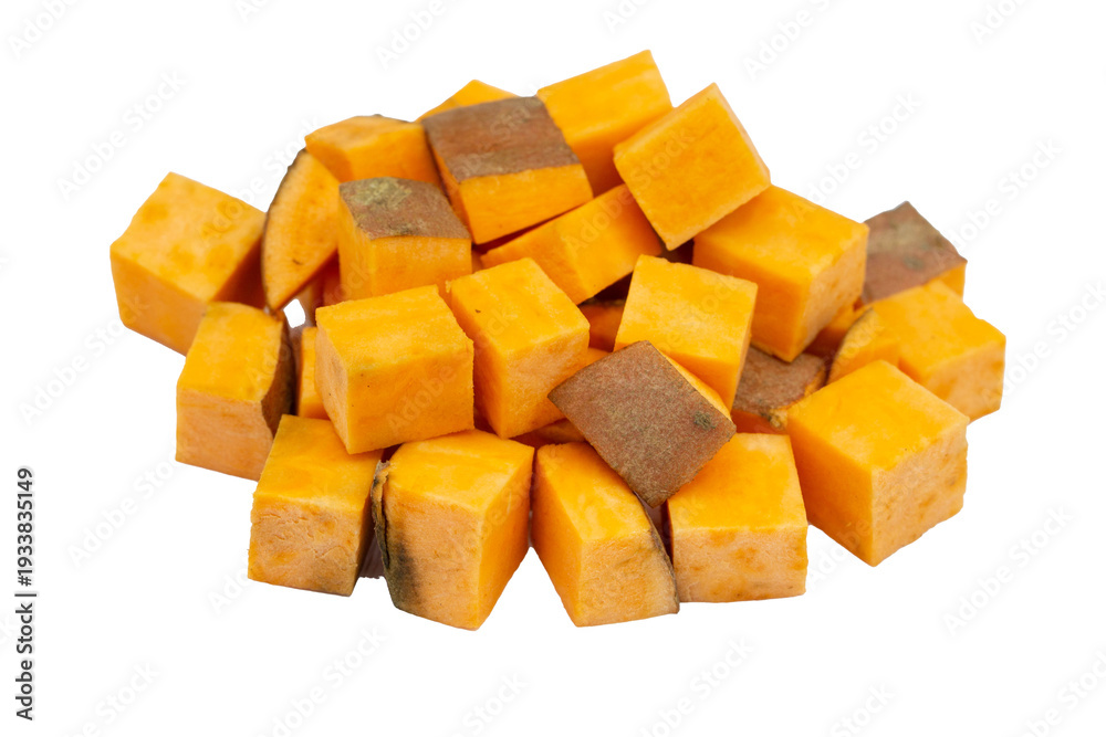 raw diced sweet potato cubes isolated on white background for food compositing #1933835149