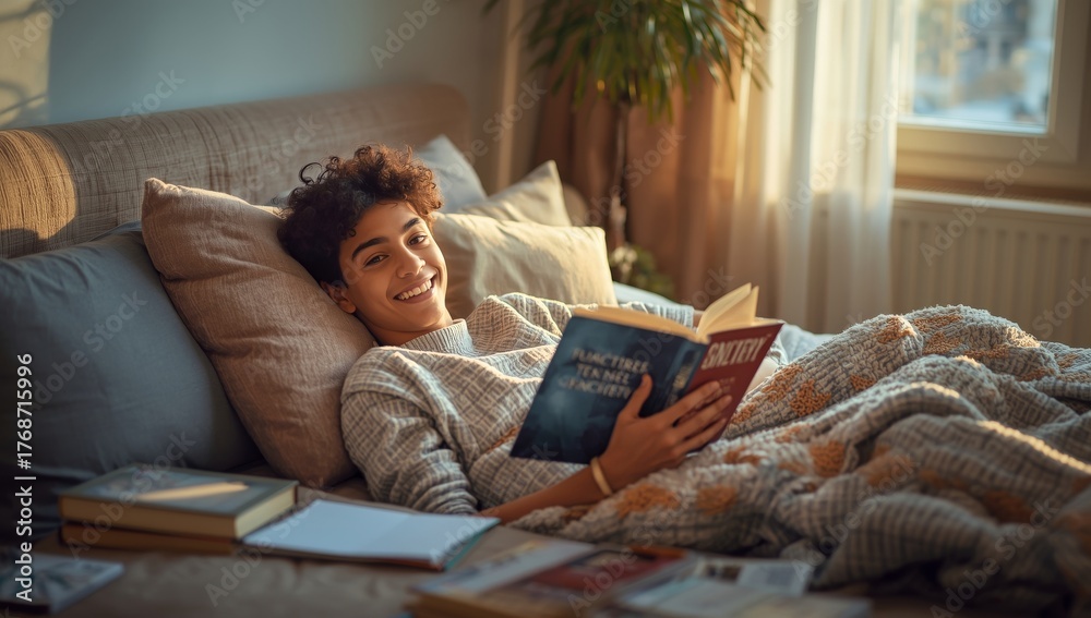 Reading a Book on a Cozy Bed in a Sunlit Room During the Afternoon #1768715996