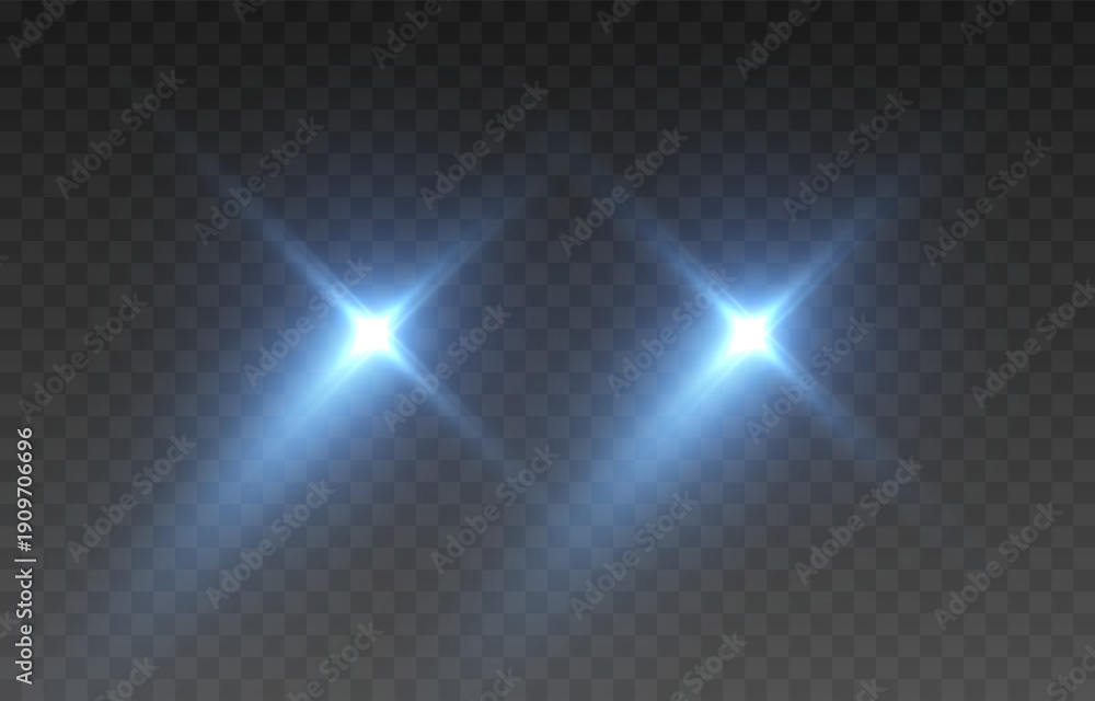 Realistic blue headlight light PNG. Lighting from turned-on car headlights. Light effect. #1909706696