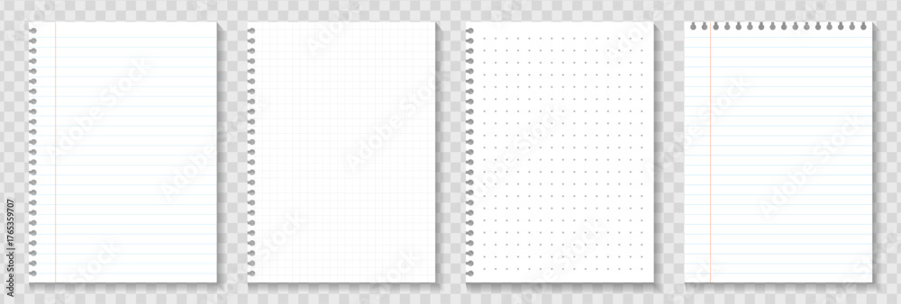 Realistic lined and checkered sheets note paper. Blank pages of school notebook. Background paper texture. Lined, Grid & Blank on Transparent Background #1765359707