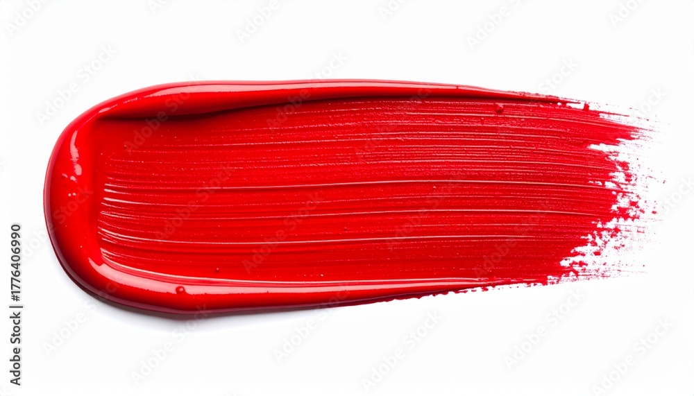 Red paint brushstroke with glossy texture and bristle detail on white background for editorial visual arts photography cosmetic decor and poetic intensity-themed visuals #1776406990