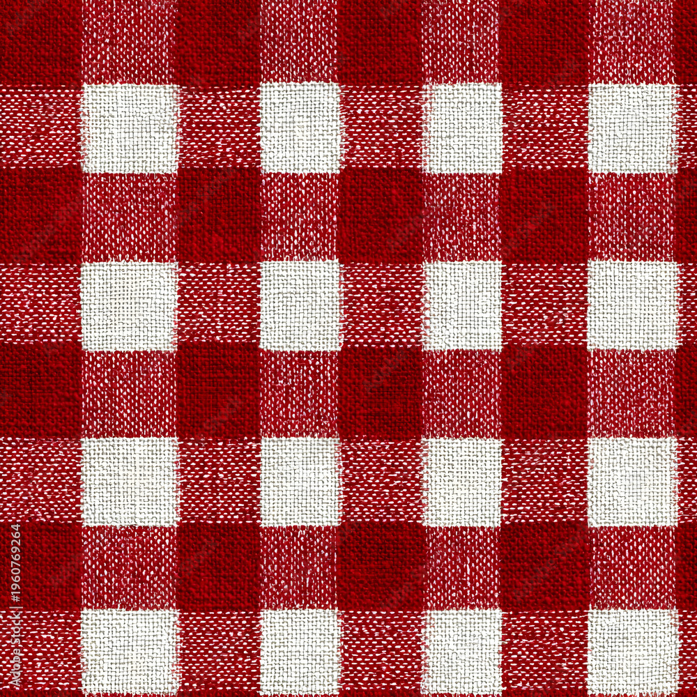 Red White Gingham Fabric Seamless Pattern, Classic Checkered Textile Background, Rustic Picnic Tablecloth Design, Woven Cotton Texture Detail #1960769264