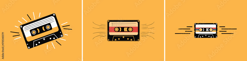 Retro cassette tape vector set, vintage audio music mixtape illustration, nostalgic 80s 90s sound recording design for t shirt design #1705360379
